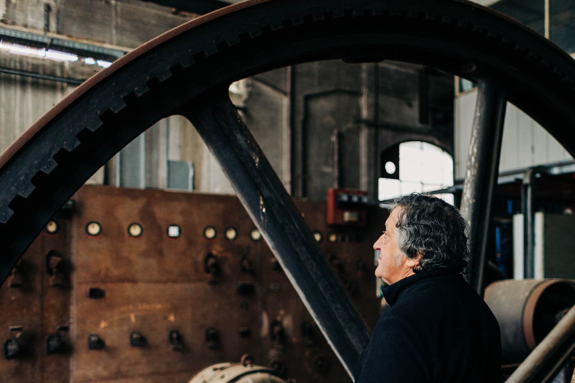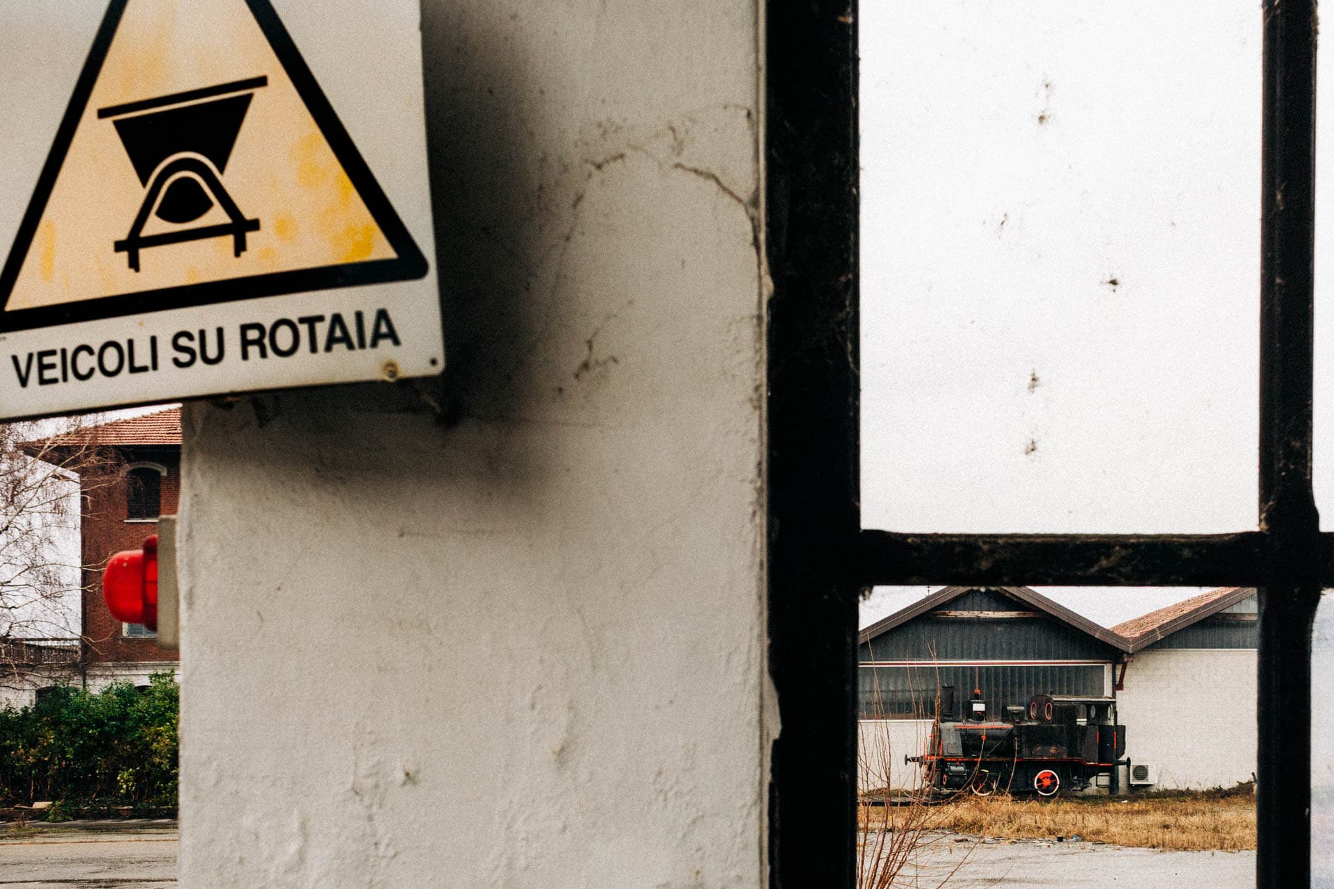 Roberto and Claudio, two members of the Museo Ferroviario Piemontese are assessing how to transport the locomotive.
